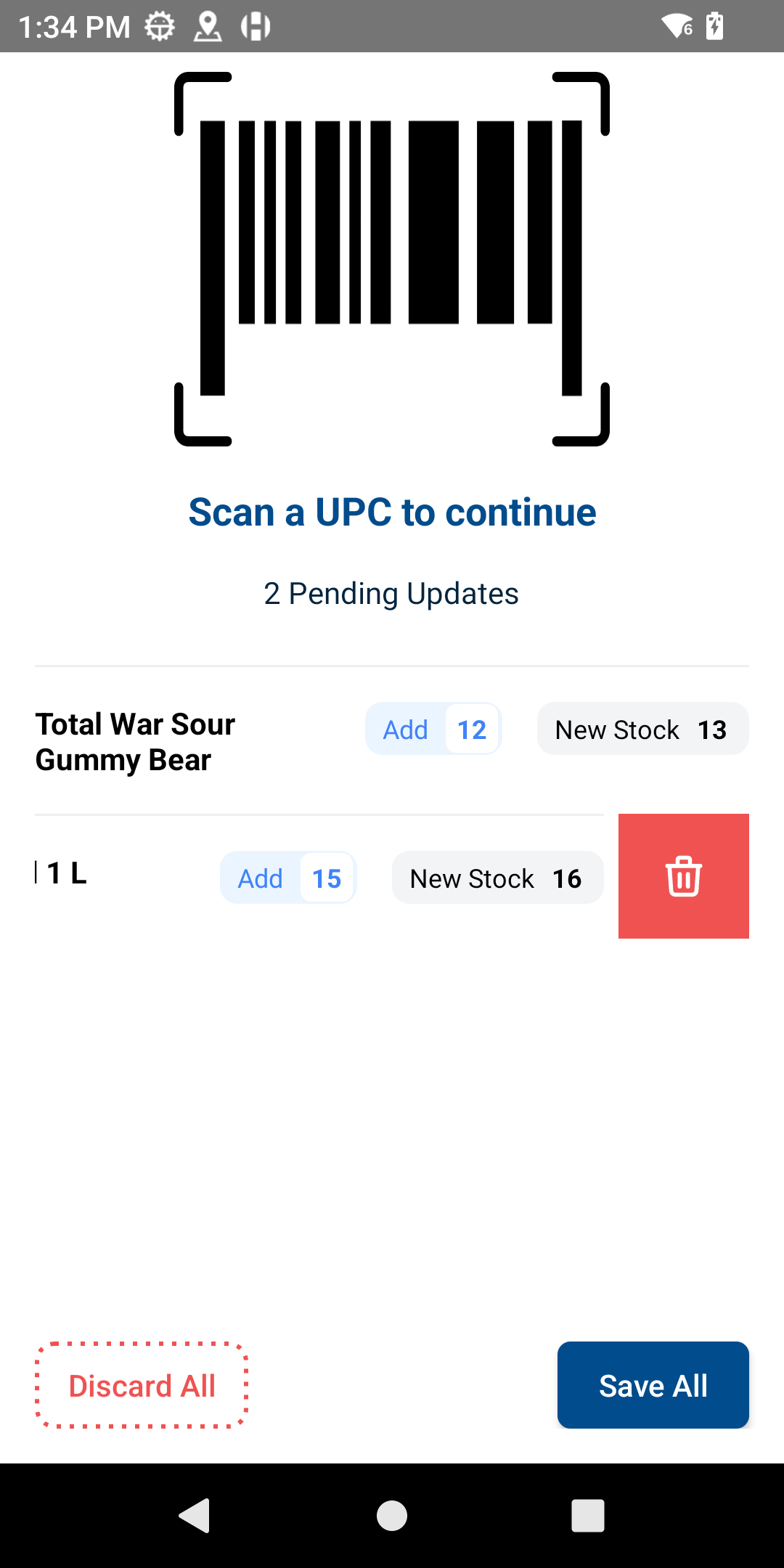 When on the “Scan a UPC” screen, tap Save All in the bottom right hand corner
