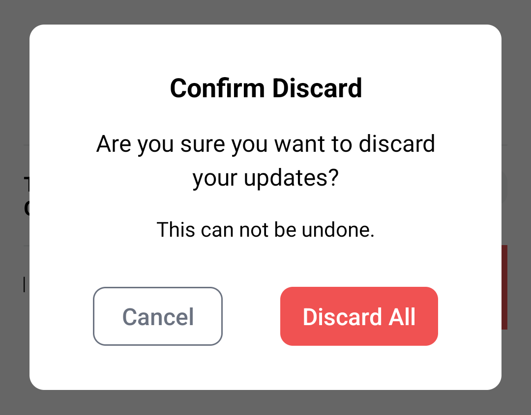 After scanning any inventory, you can discard your inventory changes by clicking “Discard All” in the bottom left hand corner