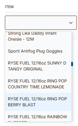 Select the dropdown in the Item column and search for/select the item you are looking to reconcile